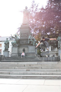 Am nächsten Morgen wurde das Auto bepackt und wir fuhren in Richtung Rotterdam, vorher machten wir jedoch einen kleinen Abstecher nach Münster um die Curbs der Schule in Gievenbeck zu skaten. Der Spot ist ein wahrer Traumspot und wir hatten das Glück wenigstens eine Line filmen zu können bevor ein Schauer die Session beendete. Also hiess es weiterfahren nach Rotterdam wo Timo schon auf uns wartete.